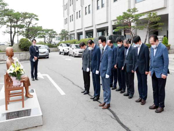 한편, 경기도의회는 지난 2018년 12월 14일 전국 지방의회 최초로 ‘평화의 소녀상’을 건립하고, 일본군 위안부 피해자 문제를 해결하기 위해 앞장서고 있다.