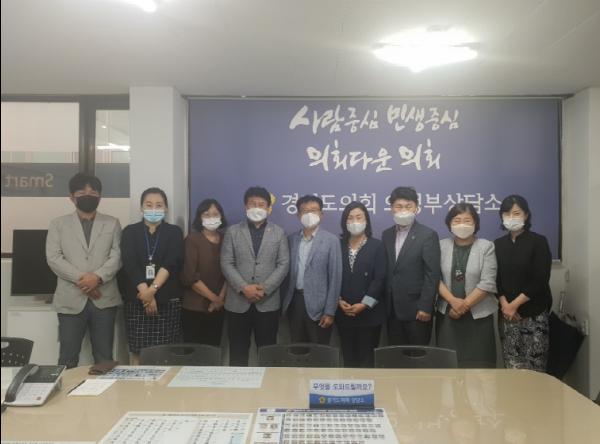경기도의회 안전행정위원회 김원기도의원(더민주, 의정부4)은 지난 16일 경기도의회 의정부상담소에서 의정부시의원 안지찬, 이계옥(더민주, 라선거구), 고산종합사회복지관 및 LH공사, 의정부시 관계자 등과 함께 고산종합사회복지관 시설 공사 개관을 앞두고 이용 시설 편의에 대한 전반적 상태를 점검하고 의견 청취와 함께 대안에 대해 논의하는 시간을 가졌다.