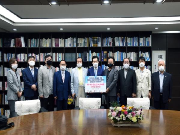 경기도 의정부시(시장 안병용)는 9월 17일 의정부시 출입기자단 협의회 22개 회원사 일행이 시청을 방문해 KF-AD 마스크 4,000매 기탁했다고 밝혔다.