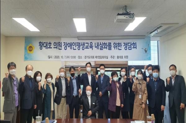 경기도의회 교육행정위원회 황대호 의원(더불어민주당, 수원4)은 7일 경기도의회 제1정담회실에서 “장애인평생교육 내실화를 위한 정담회”를 개최하여 장애인 교육 여건 개선 및 교육 기회 확대 방안을 모색하는 자리를 가졌다.