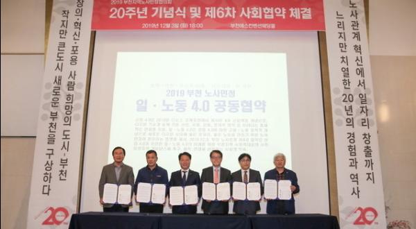 또한 시는 ‘2019 부천 노사민정 일·노동 4.0 공동 협약’에서 4차 산업혁명 시대를 맞아 7개 유관기관과 협력·연대를 통해 좋은 일자리, 좋은 노동을 만들어내기로 약속했다. 고용노동부 부천지청, 경기도일자리재단, 부천고용복지센터, 부천산업진흥원 등 유관기관의 의견을 수렴하는 한편 컨설팅과 모니터링도 함께 실시해 경제도시로서 한 단계 도약하고자 한다.