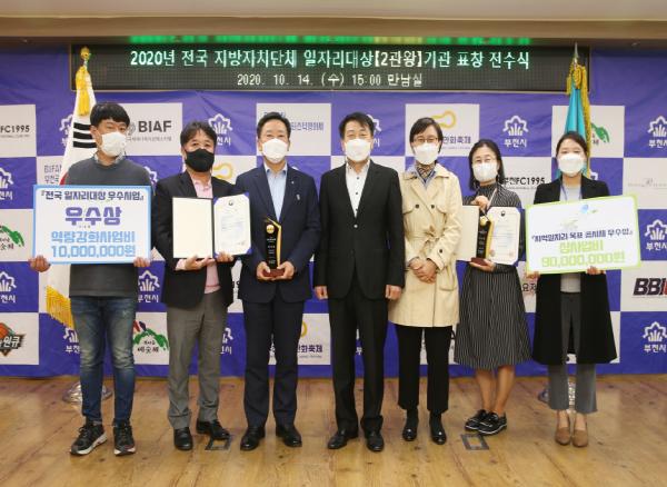 부천시는 일자리 정책의 성과, 노력 및 창의성 등을 종합적으로 평가한 2020 일자리대상에서 기초 지자체 유일, 전 분야 우수상 수상의 영예를 안았다.