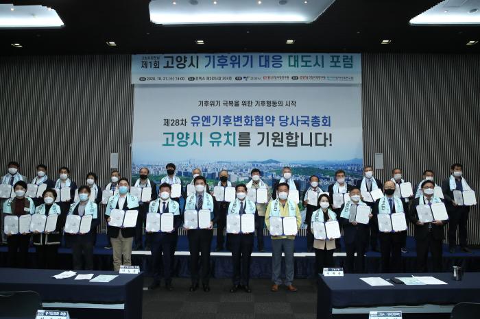 공공과 전문가, 시민 등 50여명이 모인 제1회 고양시 기후위기 대응 대도시 포럼에서 이재준 시장은 “마지막 골든타임인 2023년 열리는 COP28은 가장 강력하고 전례 없는 실천방안을 논의하는 자리가 될 것”이라며, “가장 선도적이고 과감한 생태혁명 도시가 될 이곳 고양시에서 COP28이 개최되어 가장 빠른 논의와 실천이 이루어지기를 기대한다”며 시민이 함께 뜻을 모아주기를 호소했다.