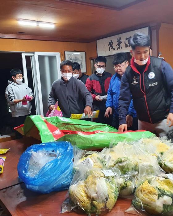 PJ청년봉사단 회원 20여명은 지난 11월 13일 저녁 직접 김장을 담그고, 이튿날 오전 독거노인 100가구에 김장을 비대면으로 배달하고 전화통화로 김장을 배달했음을 알렸다.