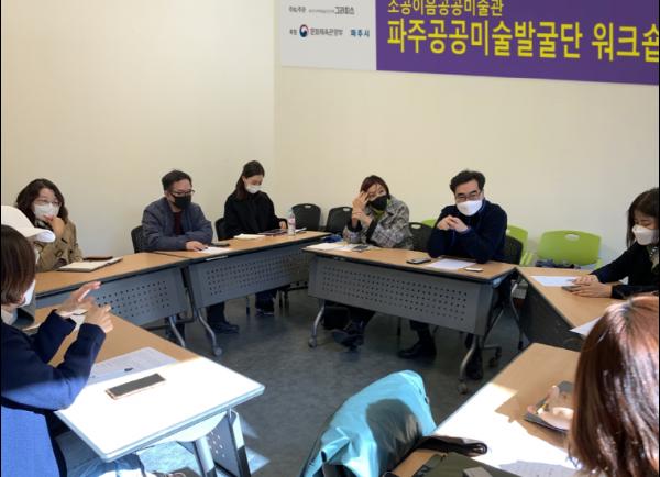파주시는 지난 달 10월 중순부터 오는 11월 말까지 매주 화요일 운정호수공원 에코토리움에서 2020 공공미술 프로젝트 ‘우리 동네 미술’ 조성사업을 위해 주민들이 함께하는 파주공공미술발굴단 워크숍을 진행하고 있다.