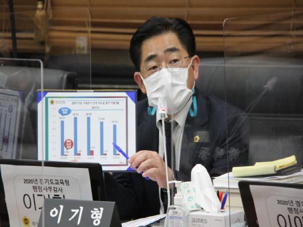 이날 교육기획위원회 소속 이기형 의원(더불어민주당, 김포4)은 2025년 교육부에서 시행될 예정인 ‘고교학점제’를 경기도에서는 올해 50% 시행하여 운영하고 있고 내년에는 75%까지 운영할 예정이며 2022년 전면도입하는 계획으로 전국 평균보다 일찍 도입하는 점을 언급하며, ‘고교학점제 만족도 및 고교교육정상화 기여에 관한 설문’ 자료를 근거로 고교학점제 조기도입에 대해 문제를 제기했다.