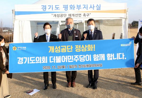 경기도의회 더불어민주당은 개성공단 폐쇄 이후 개성공단 정상화를 위해서 다양한 노력을 기울여 왔다. 개성공단 입주 기업들과 간담회, 개성공단 입주 기업 사진 및 물품 전시회, 개성공단·금강산 관광 재개 촉구 결의안 등을 통해 개성공단 재개 및 정상화를 위해 당의 역량을 쏟아 부었다.