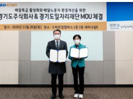 경기도주식회사는 26일 경기도일자리재단과 ‘배달특급’ 활성화와 배달노동자 환경 개선을 위한 업무협약을 체결하고 상호 지원하기로 약속했다.