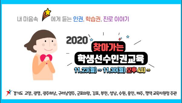 경기도부천교육지원청 교육장은 학교운동부 소속 학생선수와 개인 학생선수의 건강하고 올바른 성장 지원을 위해 경기도 12개 교육지원청(고양, 광명, 광주하남, 구리남양주, 군포의왕, 김포, 부천, 성남, 수원, 용인, 파주, 평택) 연합으로 11월 23일(월)부터 11월 30일(월)까지 6일간 실시간 쌍방향 온라인 플랫폼을 활용한 원격교육을 실시하고 있다.