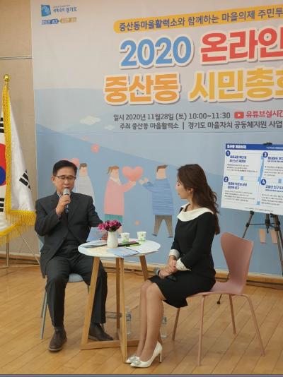 고양시 중산동(동장 길영훈) 마을활력소(추진위원장 안종율)는 지난 11월 28일 주민자치센터 5층 다목적실에서 ‘2020 온라인 중산동 시민 총회’를 개최했다. 행사는 코로나19 방역수칙을 준수하며 비대면 온라인 유튜브 실시간 방송으로 이뤄졌다.