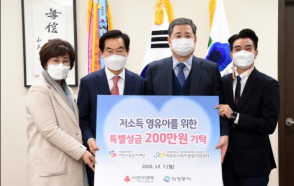 의정부시는 사회복지법인 사랑교육복지재단이 12월 7일 저소득 영유아를 위한 성금 200만 원을 기탁했다고 밝혔다.