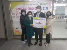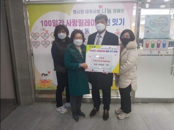 의정부시 가능동 지역사회보장협의체는 100일간 사랑릴레이 배턴잇기 운동에 참여하고 싶다며 12월 4일 가능동주민센터에 방문하여 성금 30만 원을 전달했다.