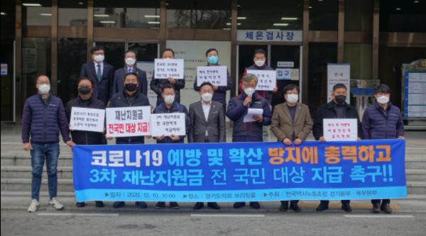 한편, 전국택시노조 경기지역본부 김연풍 의장은 성명서를 통해 3차 재난지원금을 전국민 대상으로 지급하도록 하는 정책에 적극 지지하며, 경기도에서 선제적으로 1,370만 경기도민에게 1인당 10만원씩 지급해 줄 것을 촉구하였다.