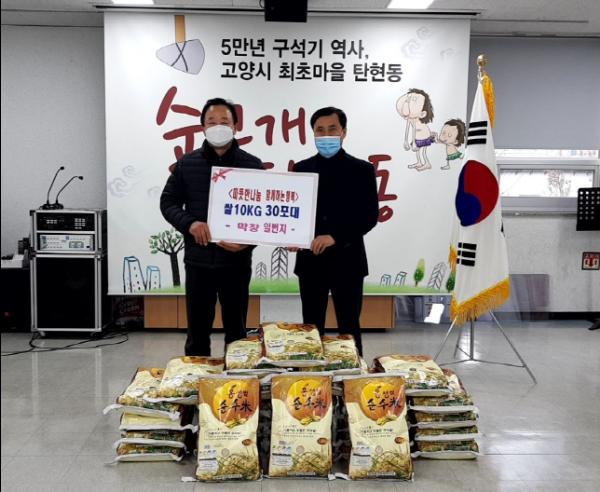 고양시 일산서구 탄현동(동장 박상원)에서는 지난 9일 막창일번지(대표 김성연)로부터 어려운 이웃들을 위한 나눔으로 사랑의 쌀 10kg 30포를 전달받았다고 밝혔다.