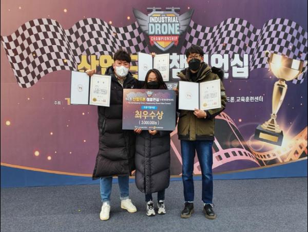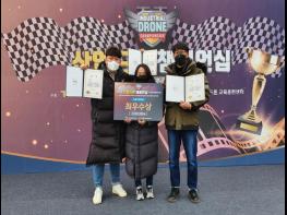 경기도 토지정보과 공간정보팀 드론업무 담당자 황효진, 백승용, 김연태 주무관이 지난 9일 시흥 드론교육훈련센터에서 한국교통안전공단이 개최한 ‘2020년 제2회 산업드론 챔피언십’ 조종기량부문에서 최우수상을 수상했다.