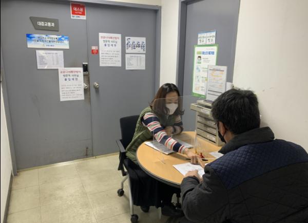 시 대중교통과 방문 민원인은 시청 제1별관 4층 대중교통과 사무실 출입문 밖에 부착된 조직도를 확인해 담당자와 전화 연결한 후, 투명 가림막이 설치된 임시 민원대에서 민원 상담 및 처리를 진행하면 된다.