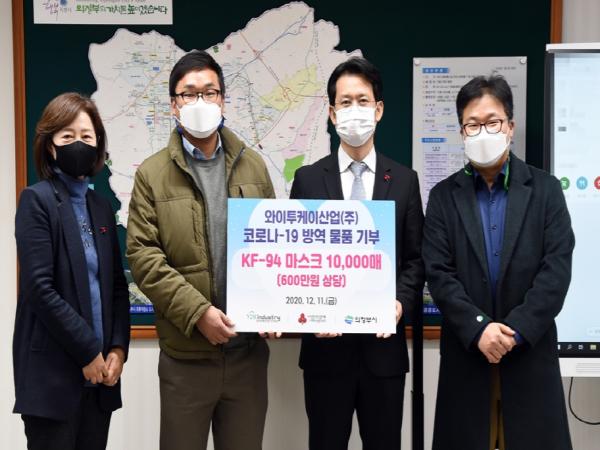 의정부시는 12월 11일 와이투케이산업㈜이 코로나19 확산 예방을 위한 KF-94 마스크 1만매를 기탁했다고 밝혔다.