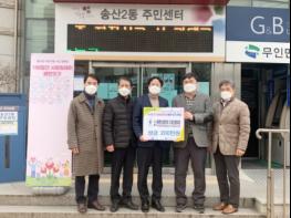 의정부시 송산2동 주민센터는 12월 11일 사단법인 용현산업단지 기업인협의회에서 송산2동 주민센터를 방문해 코로나로 어려움을 겪고 있는 어려운 이웃을 위해 써달라며 후원성금 200만원을 기탁했다고 밝혔다.