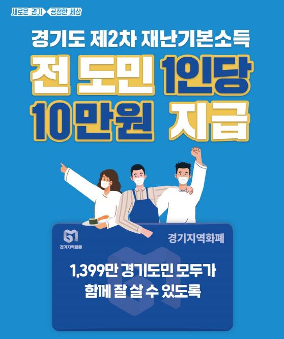 경기도가 코로나19로 인한 경제위기 극복을 위해 작년에 이어 올해도 나이, 직업, 소득에 관계없이 모든 도민에게 1인당 10만원씩 '2차 재난기본소득’을 지급한다.