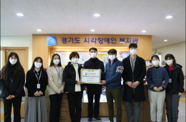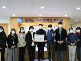 1월 19일(화), ㈜시마와 경기도시각장애인복지관은 복지관 흰지팡이홀에서 경기도 시각장애인 코로나-19 극복을 위한 감동의 허브아로마 마스크 1만장(약 400만원 상당) 전달식을 가졌다.