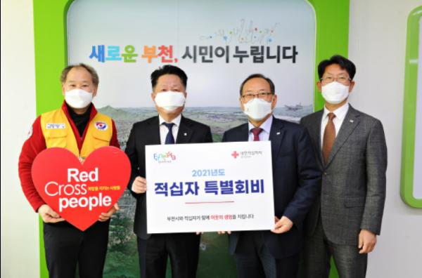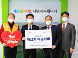 부천시 장덕천 시장은 지난 20일 시장실에서 나눔 문화 확산을 위해 적십자 특별회비 100만원을 대한적십자사 경기도지사에 전달했다.