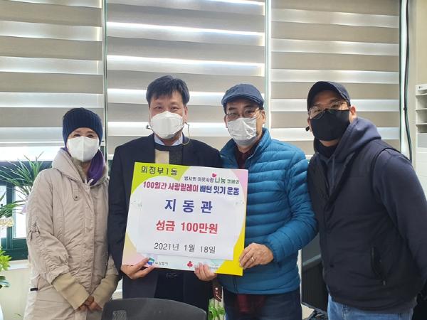 의정부1동주민센터는 설날을 앞두고 코로나19로 어려운 시기에도 이웃을 위한 100일간 사랑릴레이가 줄을 잇고 있다고 밝혔다.