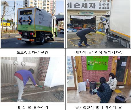 먼저, 대구시는 도로 다시날림(재비산)먼지가 많은 배출 특성을 고려해 12월 2일과 16일(매월 첫째, 셋째 주 수요일)을 '미세먼지 집중 제거의 날'로 지정하고 도로 청소차량 집중 운영과 '내 집 앞 물뿌리기' 행사 등을 실시하는 한편, 취약계층 이용시설 262곳에서 '공기청정기 필터 세척의 날'을 운영했다.?