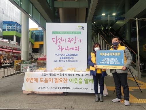의정부시 호원2동 행정복지센터 복지지원과는 1월 21일 복지사각지대 위기가구의 선제적 발굴을 위한 복지 사각지대 비대면 홍보 캠페인을 실시했다고 밝혔다.
