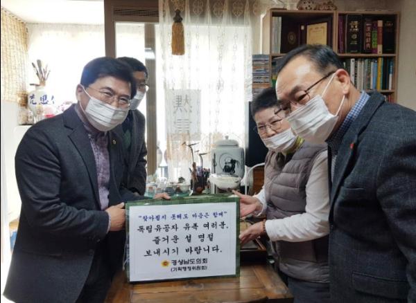 경남도의회 기획행정위원회는 설 명절을 맞아 2월 9일 독립유공자김상집지사의 유족인 김학성씨를 방문해위문품을 전달하고 고마움의마음을 표했다.