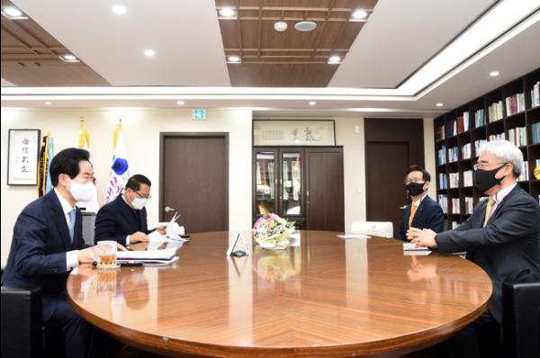 의정부시는 2월 10일 KB손해보험 대표로 새로 취임한 김기환 KB스타즈 배구단 구단주와 환담 자리를 가졌다.