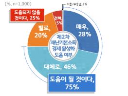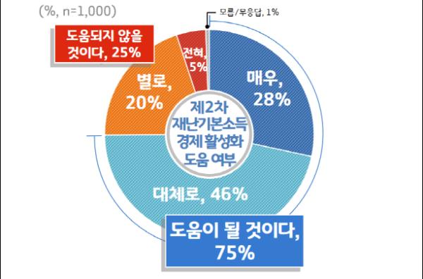 또 도민 4명 중 3명(75%)은 제2차 경기도 재난기본소득 지급이 코로나19로 위축된 소비를 촉진시켜 경제를 활성화시키는 데 ‘도움이 될 것’이라고 답했다.