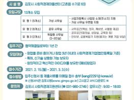김포시는 우수한 기술력 ·창의적 아이디어를 보유한 (예비)창업자와 초기 창업 기업을 대상으로 2021 김포시 사회적경제지원센터 내 창업보육실 입주자를 모집 한다고 밝혔다.