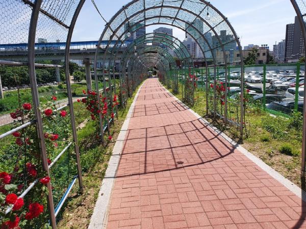 부용천과 중랑천이 만나는 뚝방길에 설치된 장미터널은 넝쿨장미와 LED조명으로 화려하게 장식했다. 2021년에는 세 구간으로 나누어진 장미터널의 마지막 구간에 장미아치를 설치해 장미터널 조성사업을 마무리하고, 터널 사이 공간을 비롯한 자투리 공간에도 구간별로 형형색색의 장미를 식재할 계획이다. 또한, 전력이입장치를 추가로 설치해 그동안 불안정했던 LED조명 상태를 개선할 계획이다.