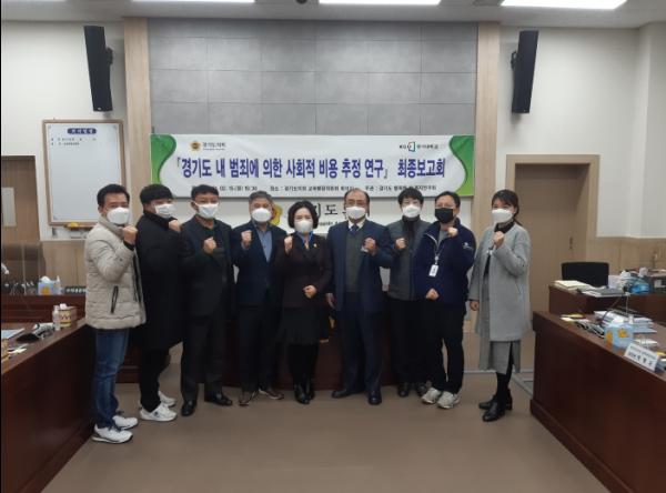 경기도의회 의원연구단체인 ‘경기도 행복한 삶 복지연구회(회장 권정선 의원, 더민주, 부천5)’는 15일(월) 교육행정위원회 회의실에서 ‘경기도 내 범죄에 의한 사회적 비용 추정 연구’에 대한 정책연구용역 최종보고회를 개최했다