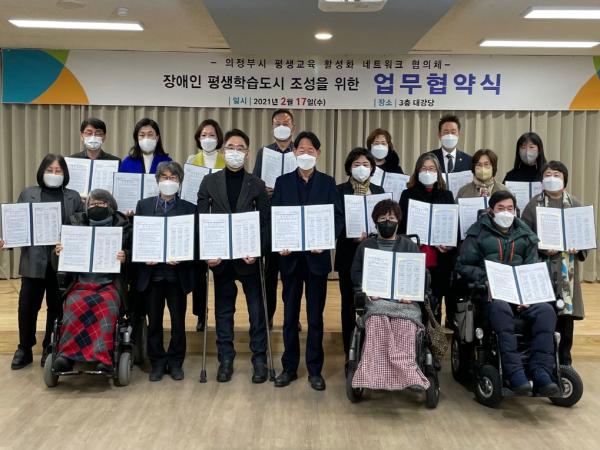 재단법인 의정부시평생학습원(원장 송원찬)에서는 2월 17일 의정부시관내 17개 장애인 기관 및 단체와 의정부시 장애인 평생학습도시 조성을 위한 업무협약을 체결했다.