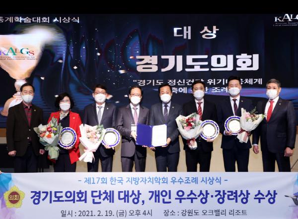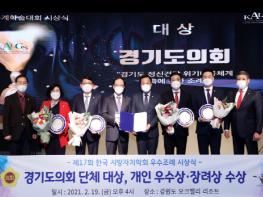 경기도의회가 19일 강원도 원주 오크밸리리조트에서 열린 ‘제17회 한국지방자치학회 우수조례 시상식’에서 3년 연속 단체 부문 대상을 수상하였다.