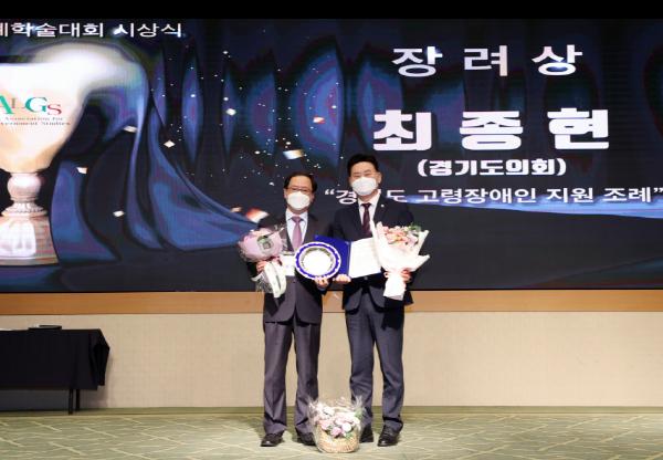 최종현 경기도의원(더민주, 비례)이 19일 원주시 오크밸리리조트텔에서 열린‘제17회 한국지방자치학회 우수 조례’시상식에서「경기도 고령장애인 지원 조례」로 개인 부문 장려상을 받는 영광을 안았다.