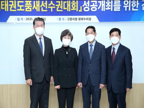 고양시는 지난 19일 시청 평화누리실에서 ‘2022 고양 세계태권도품새선수권대회’의 성공개최를 위한 간담회를 개최했다. 이 자리에는 이재준 고양시장을 비롯해 대한태권도협회, 경기도태권도협회, 고양시태권도협회 등 관계자들이 참석했다.