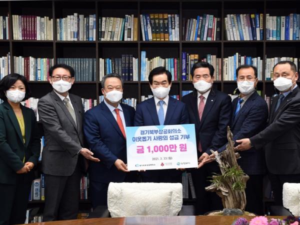 의정부시는 2월 22일 경기북부상공회의소에서 시에 이웃돕기 성금 1천만 원을 기부했다고 밝혔다.