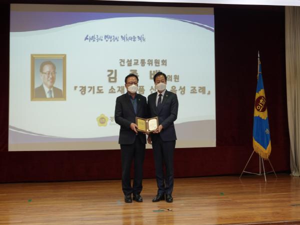 경기도의회 건설교통위원회 김종배 도의원(더불어민주당, 시흥3)이 대표발의한 「경기도 소재·부품산업 육성 조례」가 23일(화) 경기도의회 1층 대회의실에서 열린 ?년도 경기도의회 우수조례 시상식’에서 우수조례로 선정되었다.