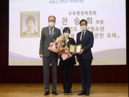 이번 수상에 대해 전승희 의원은 “여성청소년에 대한 보편적 복지로써 월경권을 보장하고자 한 취지를 도의회 입법정책위원회에서 긍정적으로 평가하고 우수조례로 선정해주신 데 깊은 감사의 말씀을 드린다”며, “앞으로도 도민의 어려움 해소와 삶의 질 향상에 기여할 수 있는 정책발굴에 더욱 매진하겠다”고 소감을 전했다.
