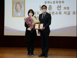 경기도의회 경제노동위원회 남운선 의원(더민주, 고양1)이 대표 발의한 「경기도 재난기본소득 지급 조례」가 2월 23일 경기도의회 대회의실에서 진행된 '2020년도 도의회 우수조례 시상식’에서 우수조례로 선정되어 수상했다.