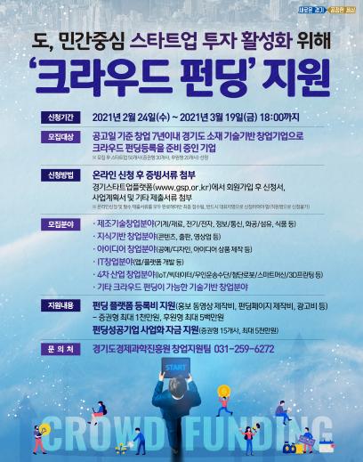 창의적인 아이템을 가진 초기 창업기업의 원활한 민간 투자금 확보와 시장성 검증을 지원하는 경기도의 ‘크라우드 펀딩 연계 스타트업 지원사업’이 유망 창업팀 모집에 나서며 본격 시동을 걸었다.