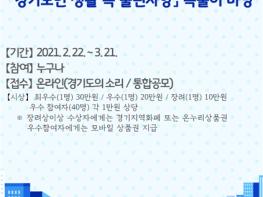 참여방법은 오는 온라인 정책제안창구인 ‘경기도의 소리’를 통해 생활 속 불편사항과 해결방안에 대한 구체적인 아이디어를 3월 21일까지 제안하면 된다.