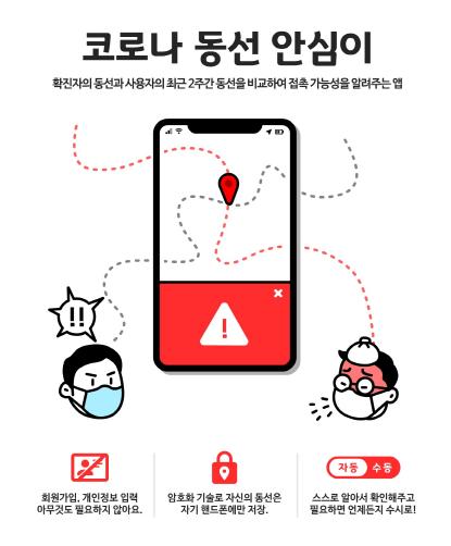 경기지역 코로나19 확진자의 동선과 사용자 동선을 비교해 위험도를 알려주는 ‘코로나 동선 안심이’ 앱이 23일 정식 출시돼 구글 플레이스토어에서 내려받아 사용할 수 있게 됐다.