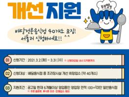 시는 서류심사와 현장심사로 40여 개 업소를 선정해 예산 소진 시까지 100만 원 한도에서 총 조리장 시설개선비의 50%를 지원한다.