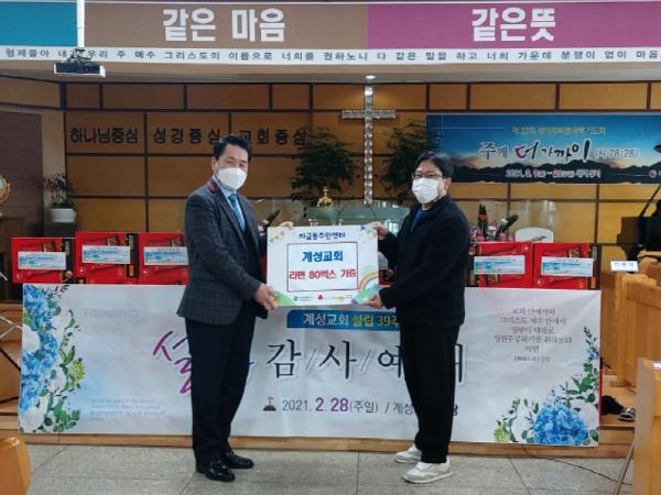 계성교회는 2019년도 성금과 라면을 2020년도에는 성금을 기탁하는 등 꾸준히 나눔 활동을 실천해오고 있다. 후원받은 라면 80상자는 관내 국민기초수급자 및 차상위 계층, 복지사각지대 대상자들에게 신속히 전달할 예정이다.