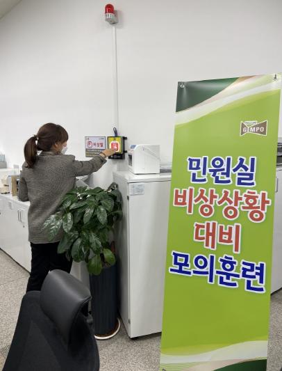 이번 훈련은 방문 민원인, 민원 담당 공무원, 김포경찰서 등 20여명이 참여하여 민원인 폭언·폭행 발생을 가정한 시나리오에 맞춰 진행했다.