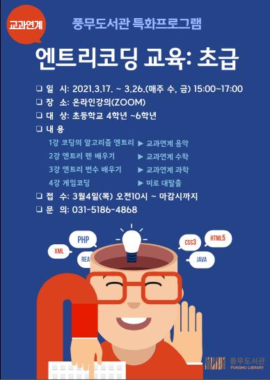 김포시 풍무도서관은 2021년 특화프로그램 '교과연계 엔트리코딩 교육: 초급'을 운영한다.