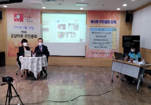 고양시 풍산동 주민자치회는 지난 2월 26일 주민이 주인이 되는 마을을 만들기 위한「2021년 제5회 공감마루 주민총회」를 성황리에 마쳤다.